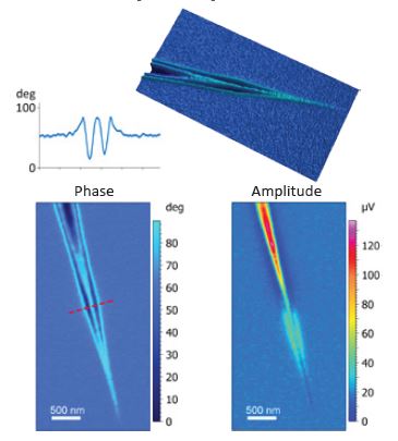 s-SNOM技术使用金属镀层的原子力(AFM)探针针尖代替传统光纤探针来增强样品的纳米尺度区域的散射,散射信号可以在远场被检测到。而这些散射信号携带了样品在金属探针针尖下纳米级区域的复杂光学性质。具体而言,这些散射光的信息包括光的振幅和相位,通过适当的模型,这些测量可以估算出针尖下样品纳米尺度区域材料的光学常数(n,k)。在某些情况下,光学相位与波长还提供了一个与同种材料常规吸收光谱近似的光谱信息。 瑞宇科技的散射式近场光学显微镜建立在基于具有领先地位的纳米光学表征工具原子力显微镜AFM的基础之上。s-SNOM设计具有无与伦比的性能,高度集成,全面自动化,使用灵活,为研究生产力和易用性设定了新的标准。 瑞宇科技的散射式近场光学显微镜特别适用于硬质材料,特别是具有高反射率、高介电常数或强光学共振的材料。它与瑞宇科技的纳米红外光谱成像显微镜(NanoIR)配合使用,可以完成对所有物质纳米尺度的化学性质分析及探索。 瑞宇科技的散射式近场光学显微镜的分辨率仅由AFM针尖的曲率半径决定,与入射光源的波长无关,能够在可见、红外和太赫兹光谱范围内,提供最佳10nm空间分辨率的光谱和近场光学图像。 产品特点: ? 10nm空间分辨率近场成像和光谱; ? ? 专利的快速成像和采谱技术,10倍于传统的空间光谱成像; ? ? 专利背景压制技术和高效光学信号收集技术,确保在10nm空间分辨率下仍然保持极高的信噪比; ? ? 预先校准光路,操作极其简便; ? ? 模块化设计,可拓展性强; 应用: 由于瑞宇科技的散射式近场光学显微镜和光谱谱图的可靠性和可重复性,s-SNOM业已成为纳米光学领域热点研究方向的首选科研设备,广泛适用于各种无机物和有机物,如表面等离子体、纳米天线、2D材料(石墨烯,BN),纳米结构,半导体,绝缘体,生命科学,高分子材料等,在等离基元、纳米FTIR和太赫兹等众多研究方向得到许多重要科研成果。 ![]() 石墨烯等离子体的s-SNOM相位和振幅图像(上—相位图像三维视图;左—相位和SPP驻波线横截面;右—s-SNOM振幅图)